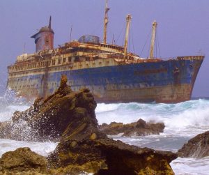 O navă abandonată aproape de Fuerteventura, Insulele Canare