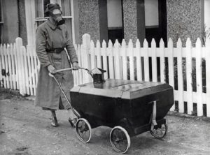 femeie-cu-un-carucior-anti-gaze-anglia-1938