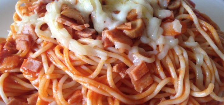Ingrediente: 200 gr spaghete 200 gr sunca presata 280 gr ciuperci 280 gr rosii cuburi 50 gr parmezan sare de mare piper macinat busuioc Mod de preparare: Fierbem pastele conform instructiunilor de pe ambalaj. Calim...