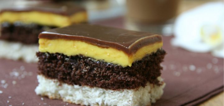 Ingrediente: Blat cocos 5 albusuri 5 linguri zahar 80 gr nuca cocos 4 linguri faina Blat cacao 4 oua 4 linguri zahar 2 linguri cu varf faina 2 linguri cacao 1/2 plic praf copt Crema...