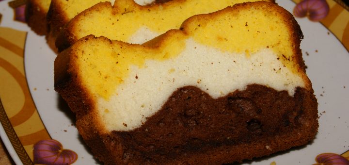 Ingrediente: pentru partea galbena: 6 galbenusuri 3 linguri faina 3 linguri zahar 3 linguri ulei 1/2 lingurita praf copt esenta rom pentru dunga neagra: 3-4 linguri cacao pentru partea alba: 6 albusuri 3 linguri faina...