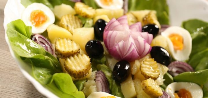Ingrediente: 10 cartofi, 5 oua, 4 castraveti murati, 2 cepe, masline fara samburi ulei de masline, sare, piper, otet Mod de preparare: Se fierb cartofii in coaja, impreuna cu ouale si putina sare. Cand sunt...