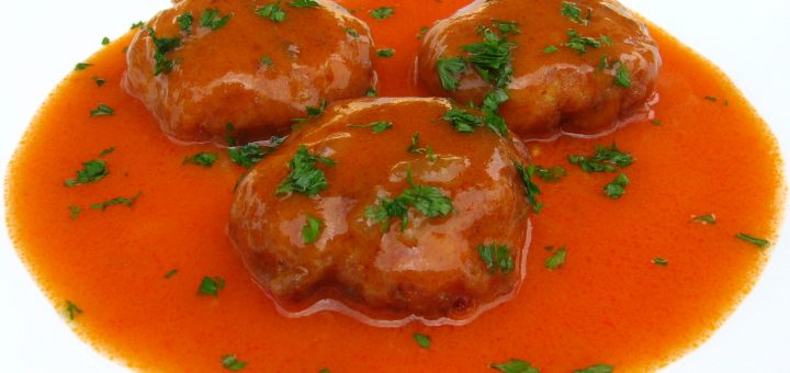 Ingrediente: Pentru chiftele: 500 g carne tocata de pui pesmet 2 oua un varf de cutit de bicarbonat patrunjel 2 catei de usturoi pisati sare, piper condimente pentru chiftele ulei pentru prajit faina Pentru sosul...